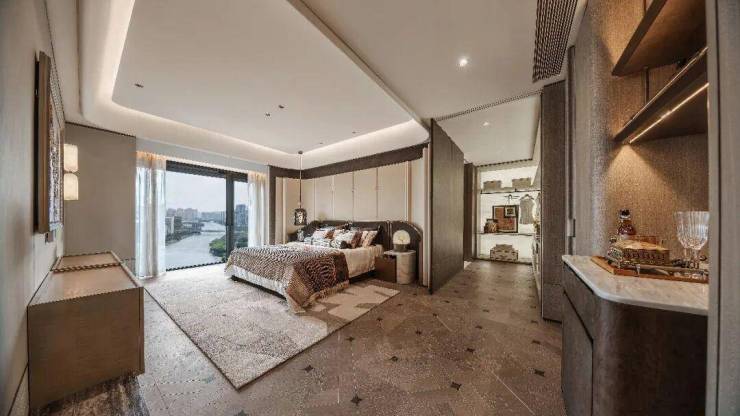 建筑面积约50㎡的主卧套间,开间达到约7.2米;主卫配置双台盆,观景浴缸,生活质感就在这些高阶配置中悄然流露。