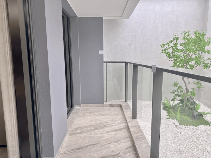 为了营造归家的仪式感,越秀杨浦天玥精心打造了宽约35米、高约5.1米的酒店式宏伟门头,并引入了价值不菲的名贵黑松。在酒店式入户大堂的营造上,精选了雪山飞狐奢石、高山流水奢石、星白奢石等珍贵材料,将品质感提升至极致。同时,酒店式入户大堂汲取海派经典之精髓,融入了古铜色金属格栅、海派风格的拼花装饰(首层及地下大堂)、以及海派复古压花玻璃等元素,营造出浓郁的人文气息。