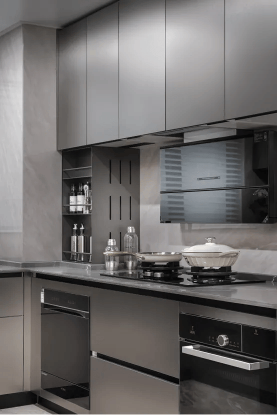 家的温情欢聚场:在餐厅区域,我们安置了一件餐边柜,其透光台面设计采用了雪山飞狐奢石材质,该餐边柜在收纳和储物功能上表现出色。