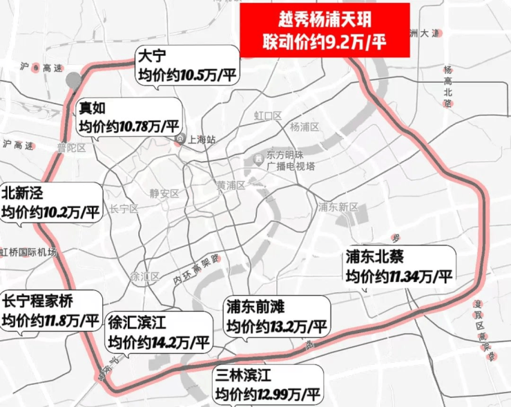 在市区,购房的门槛已经变得异常高昂。观察上海中环周边的热门区域,房价普遍攀升至每平方米10万至13万之间。例如,大宁的新房均价已达到10.5万元,真如的新房均价约为10.78万元;徐汇滨江的房价约为14.2万元;前滩的房价约为13.2万元;北蔡的房价也已达到每平方米约11万元。对于那些渴望在中环附近置业的朋友们来说,杨浦区已成为少数几个性价比相对较高的区域之一。特别是北中环沿线附近的越秀·杨浦天玥,其均价为每平方米9.2万元,尤为引人注目。