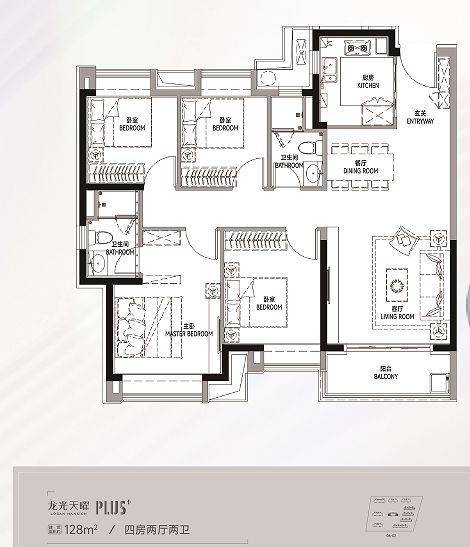 「龙光天曜」在户型设计方面也是下了很大的功夫,在保证户型方正的基础上,通过对住宅内部功能空间结构的科学设计,尽可能创造更多南向空间。