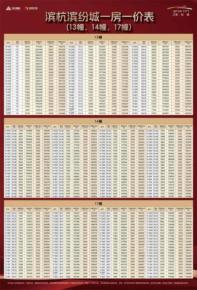 首开楼栋备案价表