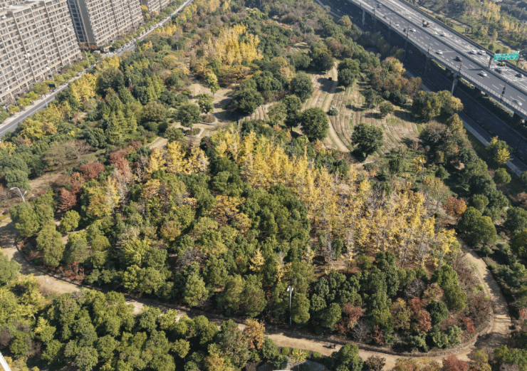 同时由于抬板,以及园区体量更舒适,园林呈现出来的效果,更像是一座城市“立体森林”。