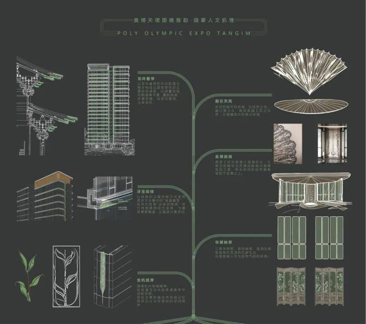 建筑细节,灵感取自南宋冰裂纹、钱塘春芽:
