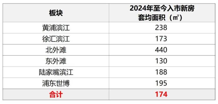 据数据统计,去年至今上海一线滨江的板块入市新房套均面积高达174㎡!