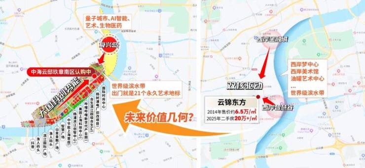 但你看地图,2站地铁,单价上涨约2万!再2站地铁,绿城北外滩项目的价格预计要20万/㎡,单价几乎是云邸玖章的2倍!