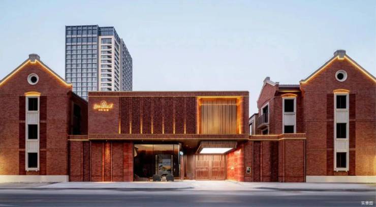项目承袭上海百年海派风貌,提炼自中共二大会址、张爱玲故居、吴同文故居等经典建筑的装饰语言,从清水红砖、装饰窗楣,到弧形韵线与山墙构造,皆以当代工艺精准还原,并在材质、比例与光影交互中,焕发出属于新一代城市住区的精致气质。传承清水红砖的建筑立面,百年前作为先进建筑材料象征,如今以多种非遗拼接工艺铺陈于立面,砖与砖之间的交错堆叠,不仅是对工艺细节的考究,更是对百年历史的致敬。