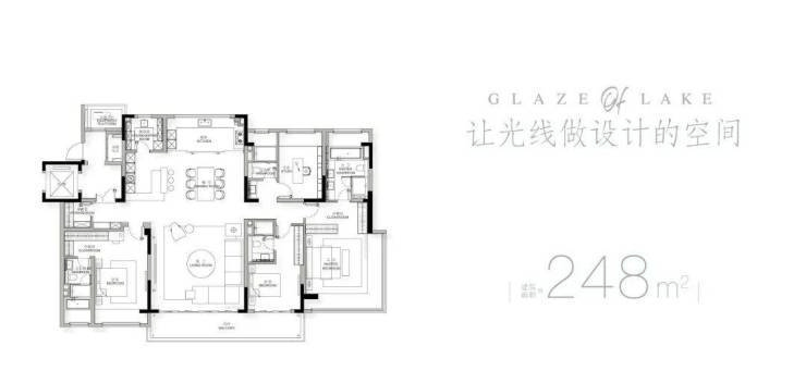 洋房:建面188–248㎡,8–10层,四开间朝南,270°环幕湖景阳台