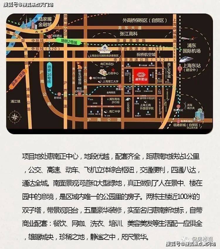 周边配套成熟(商业配套——弘基商业休闲广场、禹州商业广场、新都会商圈、浦东商场、南汇商贸城等;市政配套——上海浦东医院、南汇中心医院、光明中医院、惠南镇政府、中国农业银行、中国工商银行、惠南小学、南汇第三中学;自带配套——餐饮、网咖、洗衣、培训、美容美发等生活配套一应俱全)