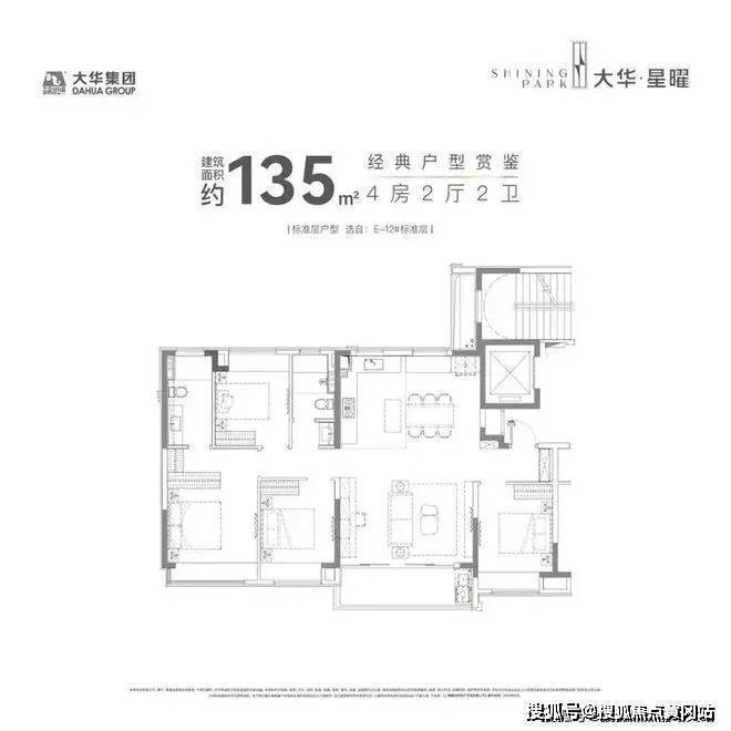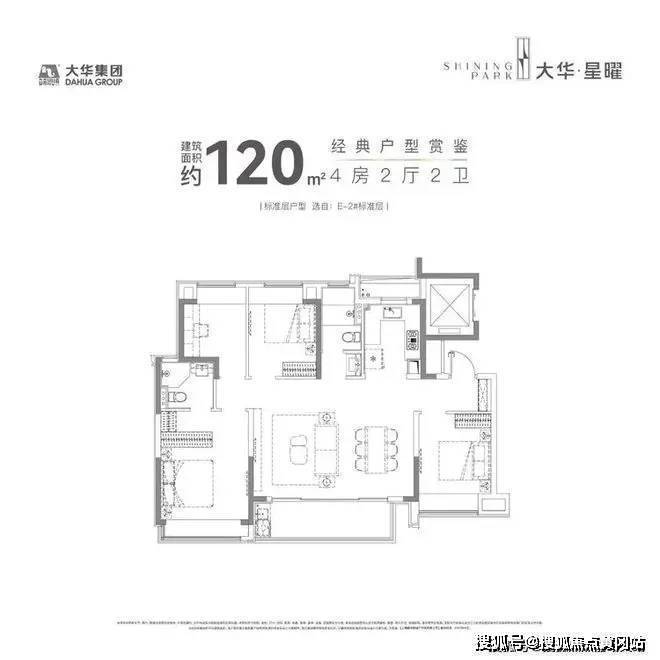 建面约120㎡的产品,市面上大多都是3房,但大华星曜做了4房的设计,实用性非常出色。