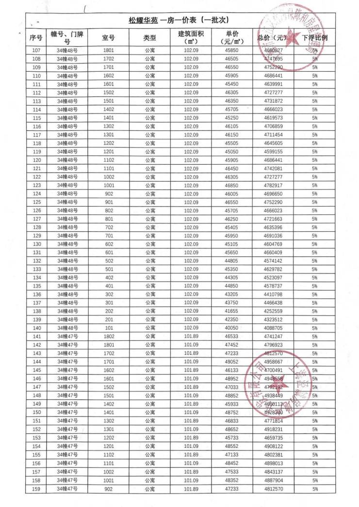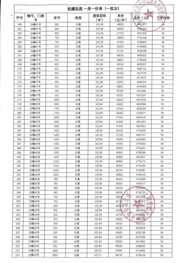 「一房一价表」