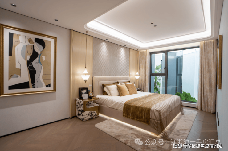 同时北侧还打造了3个飘窗,尤其是北卧无墙垛设计,飘窗与房间墙体无缝衔接、同宽延伸,视觉效果浑然一体,采光最大化,更能直接利用,铺设成一张舒适大床,彻底摆脱“小次卧”桎梏,功能与舒适大幅提升。