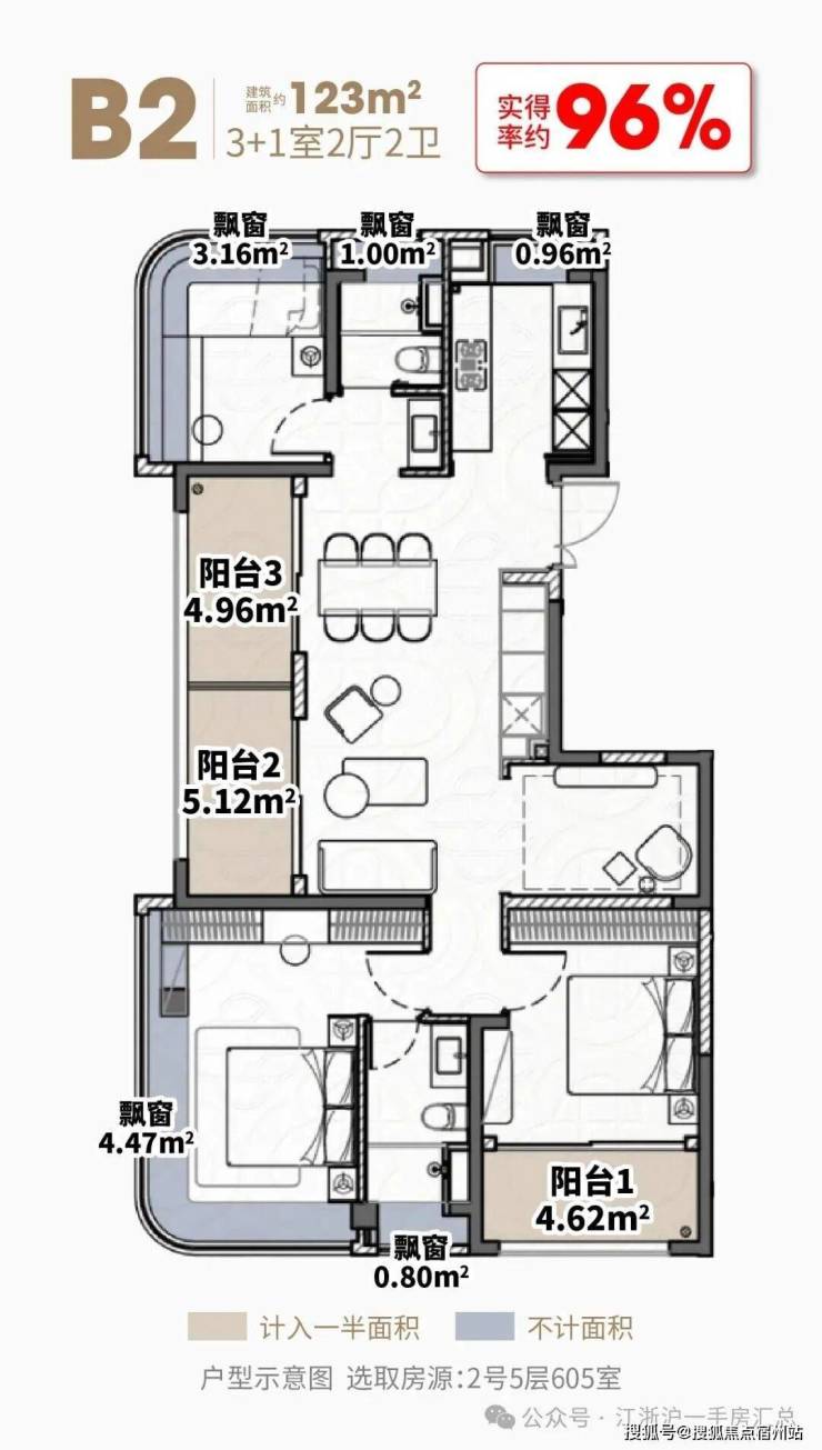 阳台+飘窗算下来,约108㎡户型的实得率达到了惊人的约87%,实得面积约94㎡!