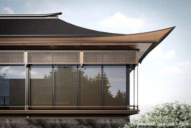项目立面以多种新中式元素构筑东方建筑美学,横向采用大面玻璃幕墙,保障隐私的同时,尽可能的增大建筑内外场景对话。