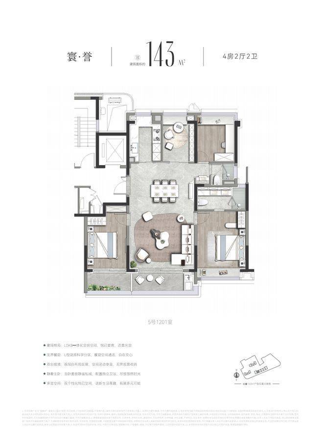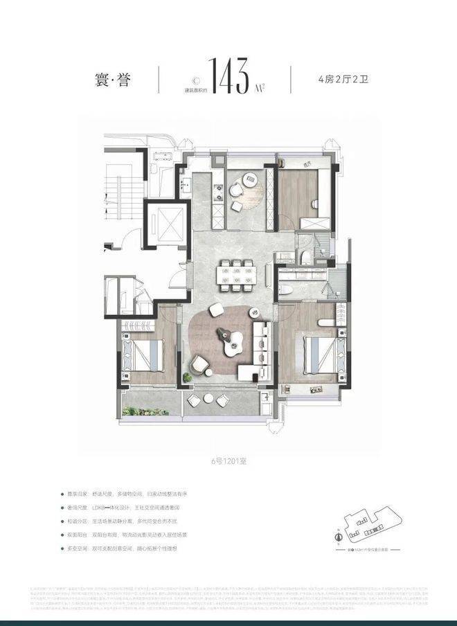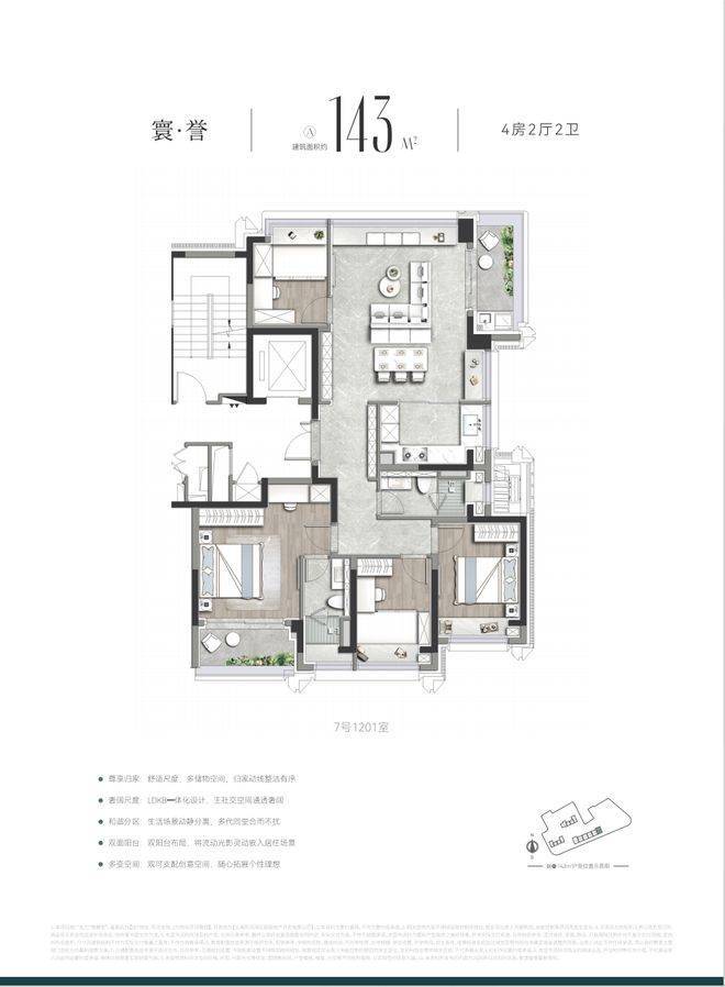 作为上海首批“好房子”新规落地范本「誉静安」未止步于单一标准的复刻,而是深度贴合上海高端家庭需求,开创性打造3.5 代宅,其约143㎡宽奢四房堪称“空间教科书”——