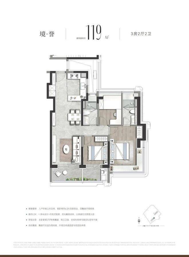 产品介绍:建面约112-119㎡三房,均价12万/㎡