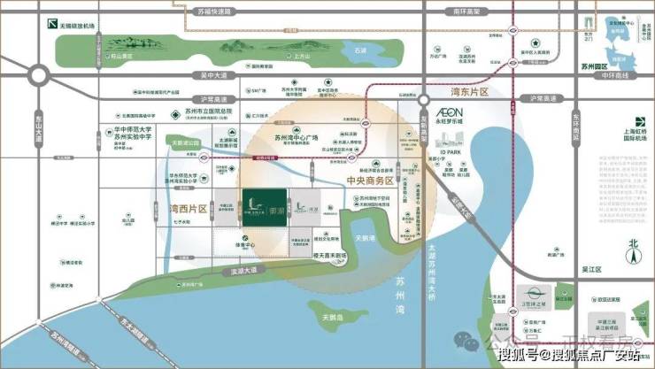 具体区位: 地处吴中太湖新城CBD核心区,龙翔路与景周街交汇处,距太湖岸线约400米。
