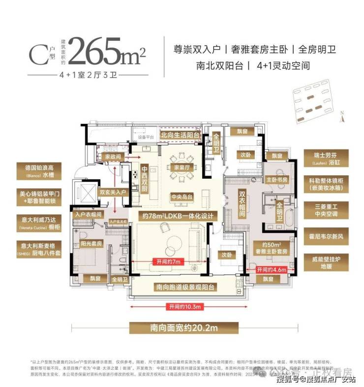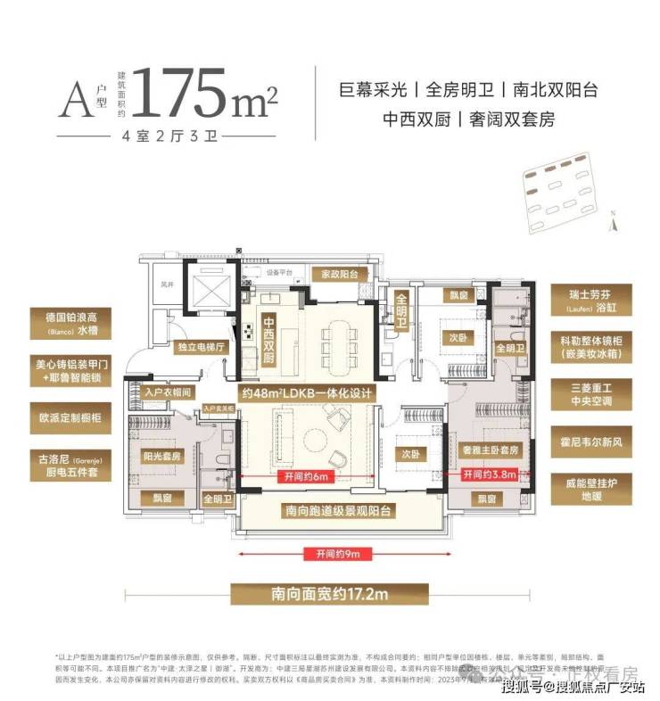 约175㎡起步,套均约220㎡+,高端纯粹圈层、全房宽境明卫、全南北双阳台、全套奢侈豪装、运动会所