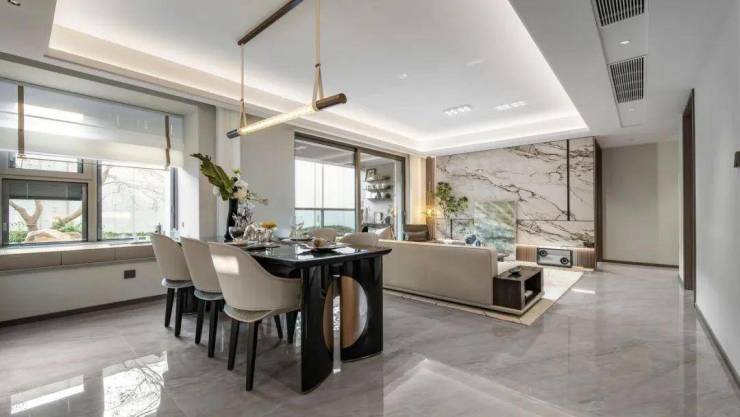 客餐厅阳台一体设计,客厅南连宽景阳台,餐厅南连飘窗,整个公区视野开阔尺度阔绰,足以彰显业主的非凡气度。