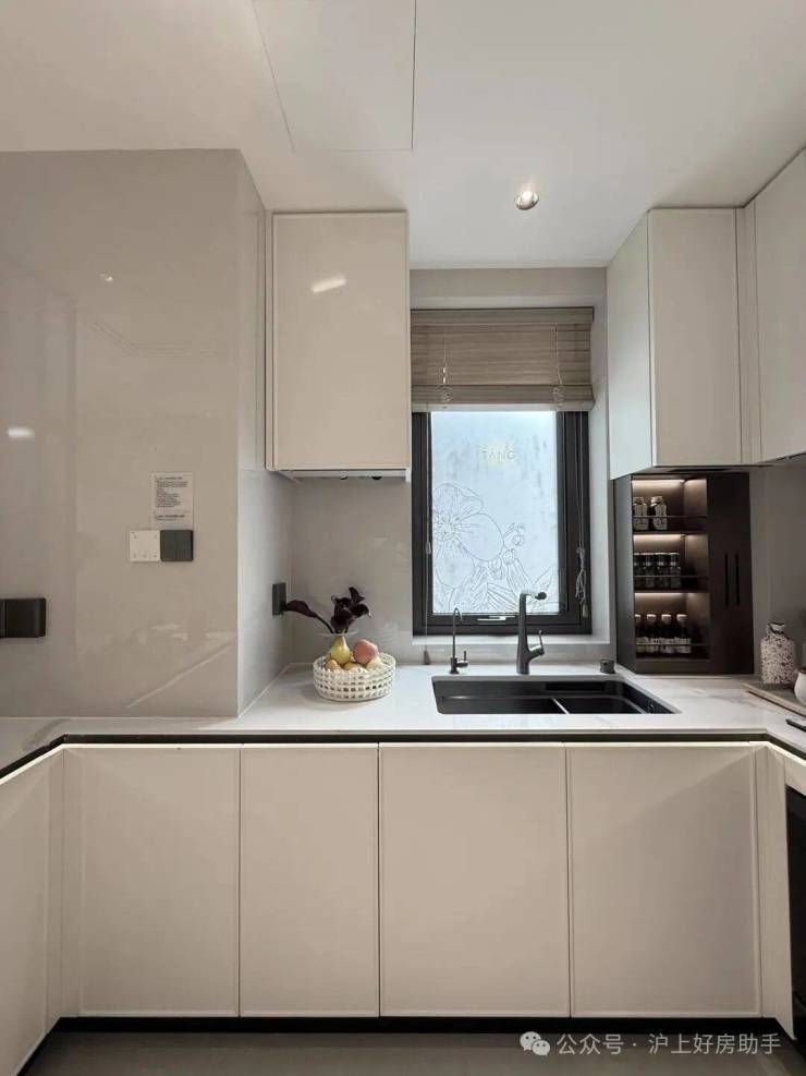 玄关和厨房旁都打造了收纳空间,除了2个主卧,厨房也带飘窗,通过大量飘窗等附加面积提升尺度感!