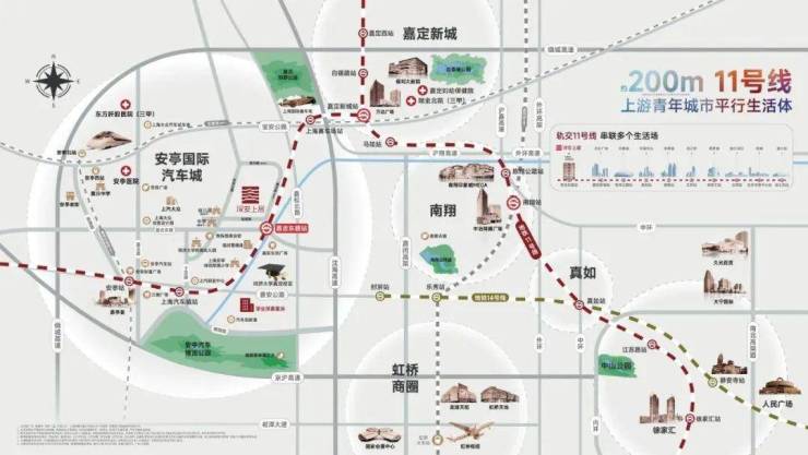 通过11号线,本项目2站即可直达嘉定新城,4站南翔印象城,11站真如副中心、17站徐家汇!