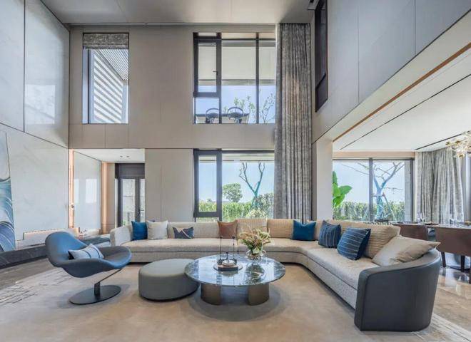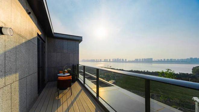 地下空间+挑高客厅(340㎡户型)+阳台+露台,绿城·春江潮鸣就像在钱塘江边搭出的一个通透积木,多棱角地折射江面的潮起潮落,以及江上的云卷云舒。
