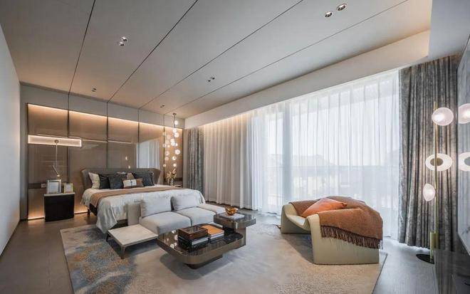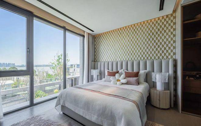 二三楼的视野则更加开阔,绵绵江水以及拥江城市界面直入眼帘,可以轻松实现边梳洗边看江:甚至躺在床上,拉开窗帘,就能欣赏千里波涛滚滚来:由于层高出色,地下室也有了更多可能,先生的酒窖、雪茄墙、游戏厅,太太的瑜伽室、手工坊、健身区,孩子的游乐场,统统能够轻松按下。