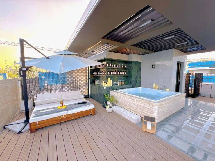 The living and dining room on the 4th floor is connected by an L-shaped terrace, forming a rare sky garden in the city. Especially for the side suite products, the rooftop terrace can reach approximately 60 square meters. Whether it is to create an open-air bar, ✅✅, the sales office phone number of feiyun yuefu: 400-9016-520, ✅✅, a children's play area, or to set up a stargazing camping ground, it is all within reach.