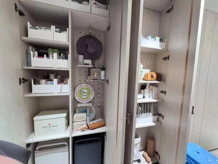 甚至连厨房最容易被遗忘的角落也都做足了收纳,而且不是传统抽屉,只需要轻轻踢一下就能弹开。