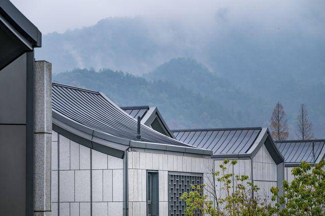 涵云轩的建筑在尽可能范围内,吸收江南院落的坡屋顶、白墙灰瓦、山水景墙等中式风骨,放眼望去,见阳光洒下、韵律辉映,将周围青山绿水映衬出更浓郁的自然之色,绿与白,深浅相照,自然与建筑,完美交融。