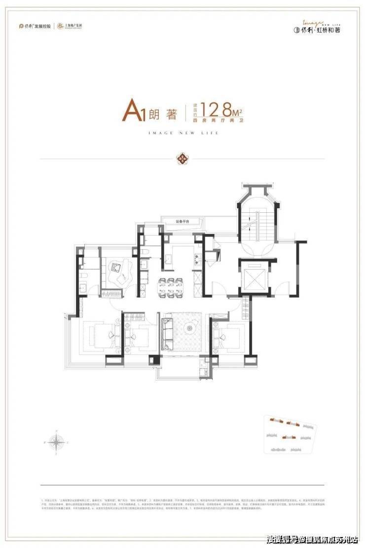 保利虹桥和著加推社区中心7号楼楼王10单元128㎡户型,及14号楼14单元104㎡户型