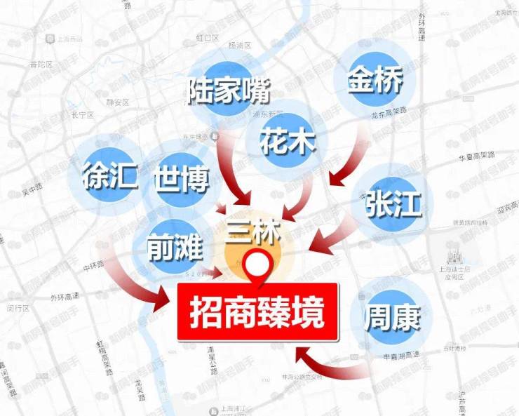 招商臻境 优点:地处三林镇,位于外环线以外,离外环、中环均比较方便,到前滩也不远,处于浦东中城区域。