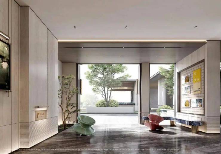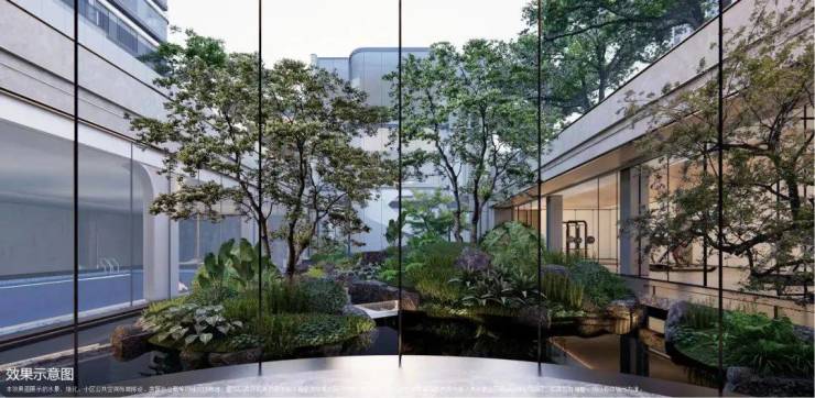项目还设有下沉式庭院,通过乌桕树、溪流等元素构建一处宁静的休憩场所,为业主提供一个放空心灵的空间。