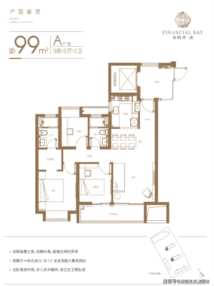 此外,目前最受欢迎的户型为建面约99平户型,A户型均价仅约28250元/平,总价在227-298万之间;约99平A1户型,均价约26686元/平,总价约227-281万;建面约99平户型方正,双联阳台设计,采光俱佳,配备步入式衣帽间,套房主卧功能划分更分明。