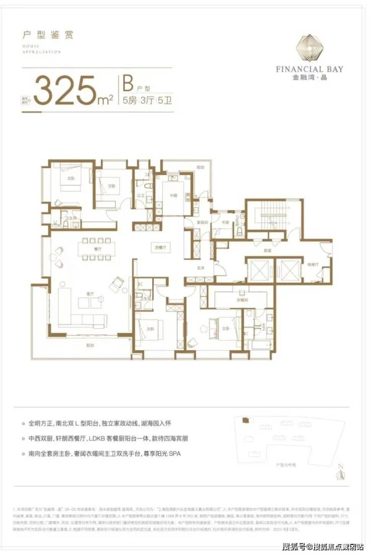 建面约325m²墅级平层,南北双L型270°广角阳台,湖景海景园景无界入怀;LDKB一体化设计,开放式联动空间,让自在成为生活的主旋律,全屋3大奢阔套房设计,演绎圈层生活奢适美学。