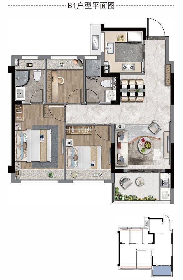 约85㎡三室两厅两卫