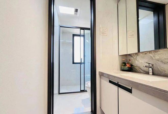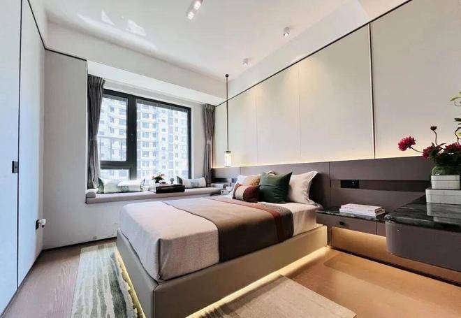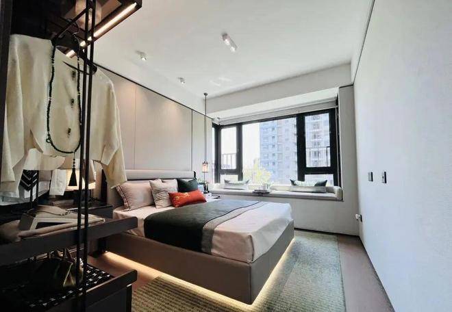 两间卧室朝南,均带有飘窗,主卧自带独立卫浴,小户型也可以拥有酒店套房般的体验。北向房间设计双飘窗,这也就意味着拥有双向景观,给了生活更多一种的可能。