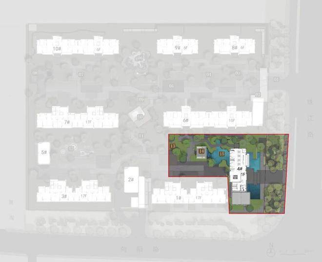 本项目地块容积率1.8,在规划中避免传统小区规划中楼王与其他楼栋景观资源的分配不均的问题强调景观分配的均好性,力争每一楼栋都能享受到园区内较好的景观资源。