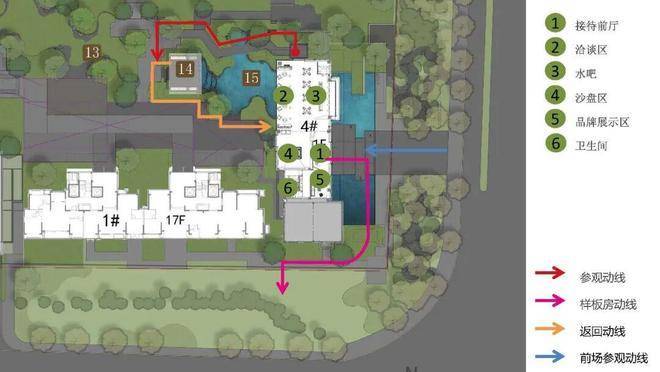 本案整体用地相对较小,北侧又受到现有居住区日照要求的制约,在极其受限的情况下,展示区只占用了东南角一隅,充分利用了楼栋间距,兼顾了让渡用地资源给住宅产品、示范区的昭示性、地库经济性等多方面的考虑。