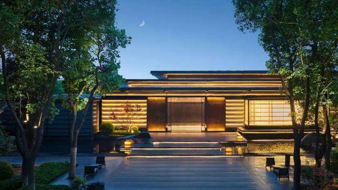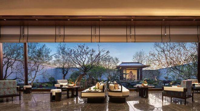 朝向内院的部分采用了长达15M的通透的超大玻璃面,形成并且使用将转角打开的现代设计手法,彻底打开室内外的空间界面,从洽谈区朝外望去,映入眼帘的是一幅横贯整个景观后场的东方园林画卷。