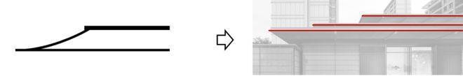 本案将传统坡屋顶的脊线举折及重檐的形式融合抽象,以层叠平屋面的形式进行演绎,体现一种含蓄、耐人寻味的东方审美意味。