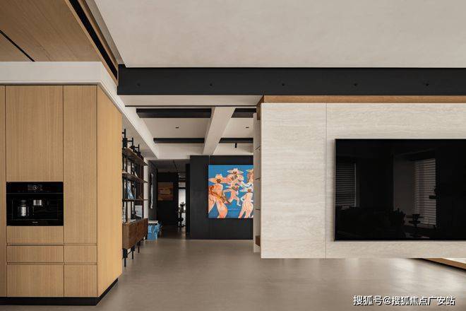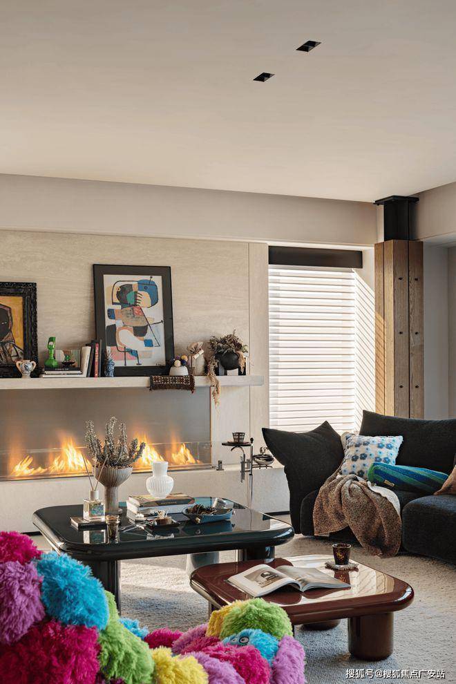 客厅色彩与光影交织,犹如复调的交响,层次分明,喧嚣与静谧并存,矛盾却不冲突。色块如同低语的音符,在空中编织,形成一种看似无序的秩序。