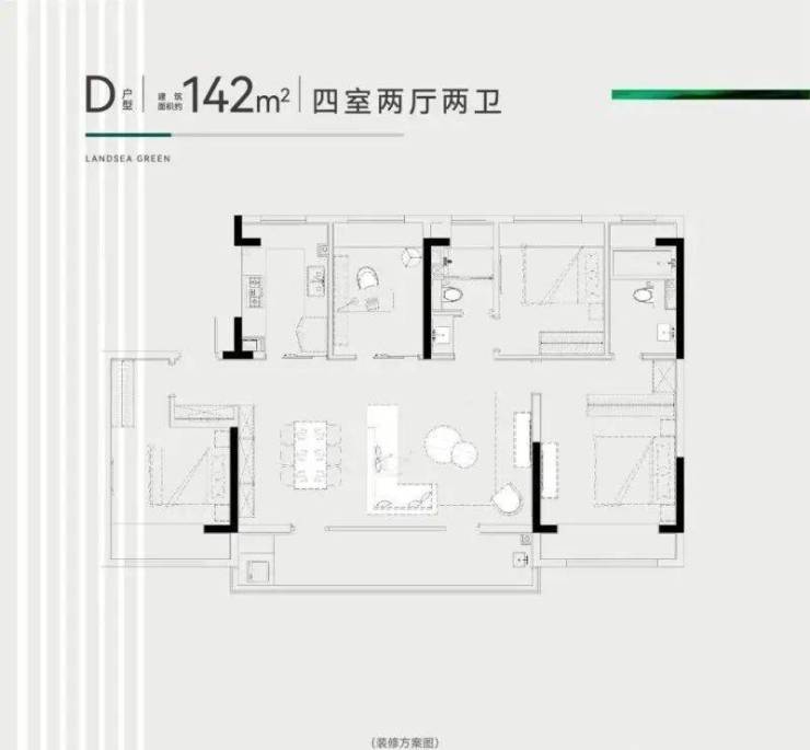 142㎡户型赏析—— 四房两厅两卫 ——