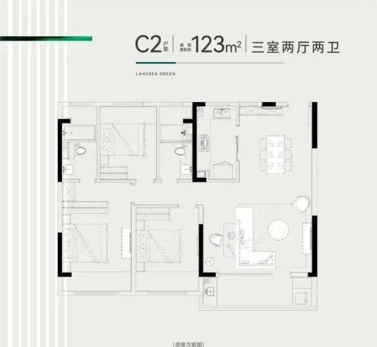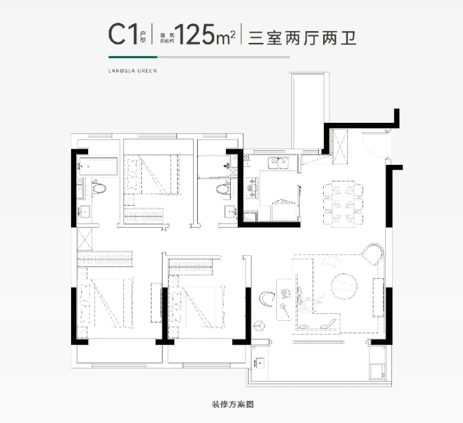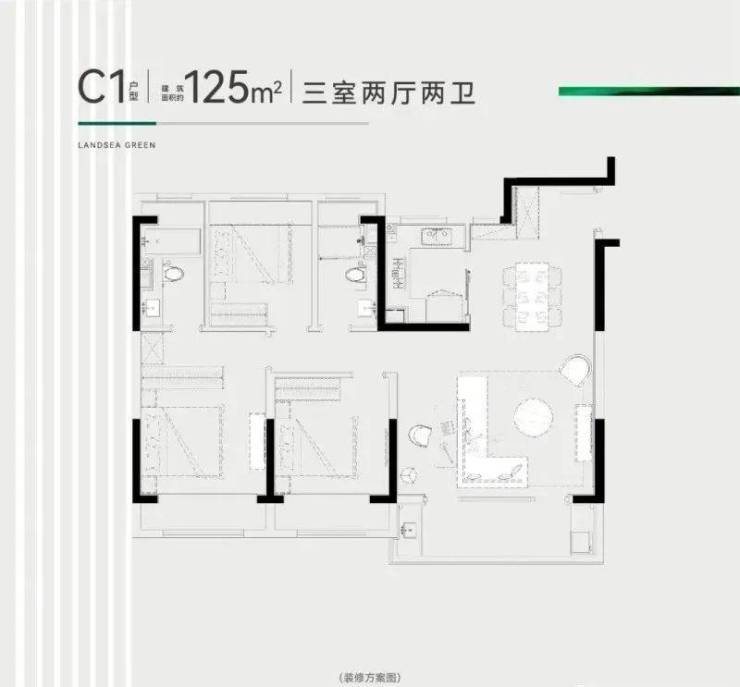 建面约125㎡精工三房 舒适新定义