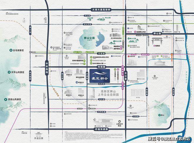 生态环境:被 “三山五园” 环伺,三山指天平山、灵岩山、狮子山,五园包括玉山公园、狮山公园(在建)、索山公园、运河体育公园、横山体育公园。