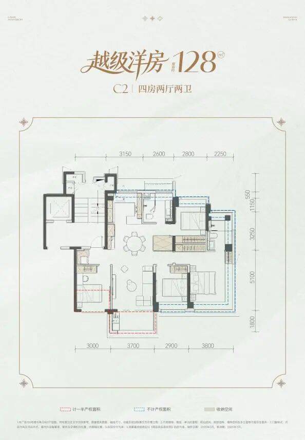 约128㎡「越级洋房」四室两厅两卫,实现了约89-95%的高实得率,将同等面积段产品的空间利用率推至新高度,做到真正的大四卧格局。