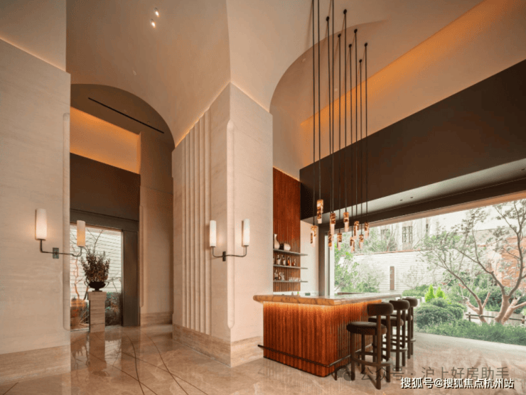外滩瑞府的2号楼泛会所,正是华润置地深入洞察这份需求后,给出的精准回应。空间由汤臣一品、翠湖六期同款设计师渡边智昭先生操刀,实际呈现的质感不仅还原了设计师的蓝图,更带来超出预期的惊喜。整体空间中,艺术廊道深度融合外滩历史文脉,顶部石材切割出流畅的圆弧转角,与地面弧形线条相互呼应,行走其间宛如置身艺术展馆,每一步都藏着底蕴,这种经典设计语言让空间越住越耐看,经得起时间考验。