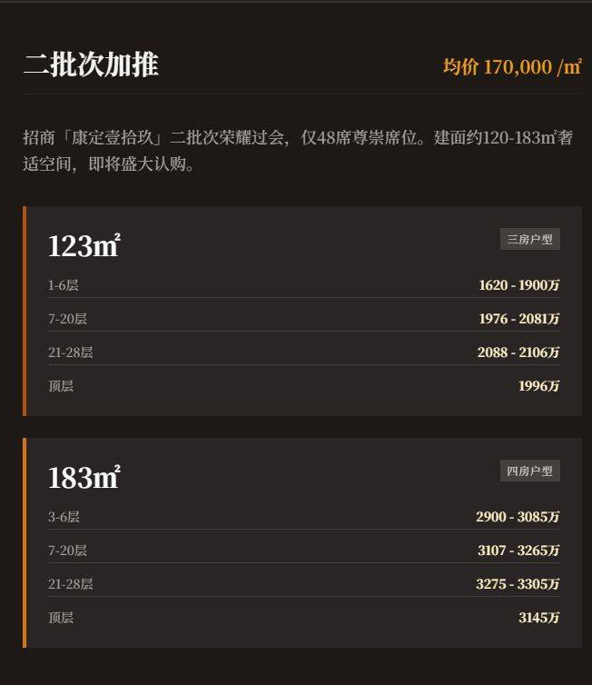 价格信息:均价约17.18万元/㎡,总价1950万起