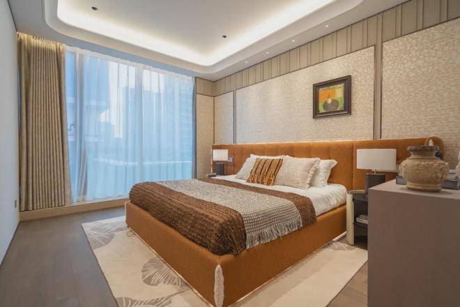 每一个卧室,则是都拥有专属的背景墙,珍珠鱼皮与香奈儿格纹材质的搭配、菲律宾贝母手工工艺,还有麂皮纹、编织皮革等用材,都出现在了不同的卧室背景墙上……明知道这样做的成本更高、豪宅更多,但是依然坚持,为的就是给予业主更美观的享受。