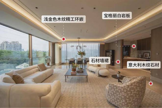 205㎡户型:四房两厅三卫,意大利设计师Andrea Bonini操刀,木饰面与淡雅石材克制搭配。